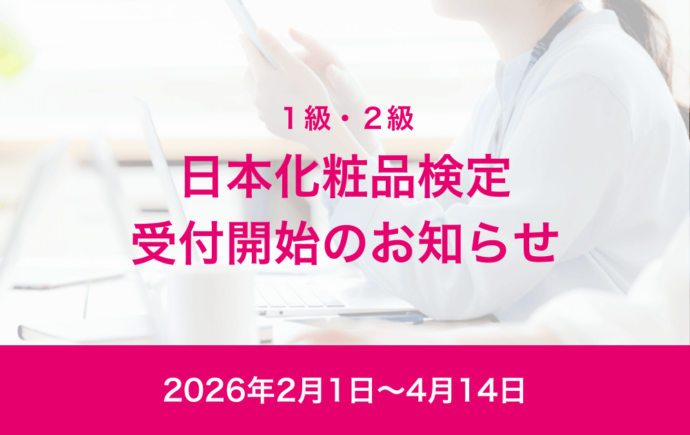 日本化粧品検定は美容関係者をはじめ生涯学習を目的とする一般の方々や学生など、幅広い年齢層の方を対象に、化粧品・美容に関する知識の普及と向上をめざした検定です。