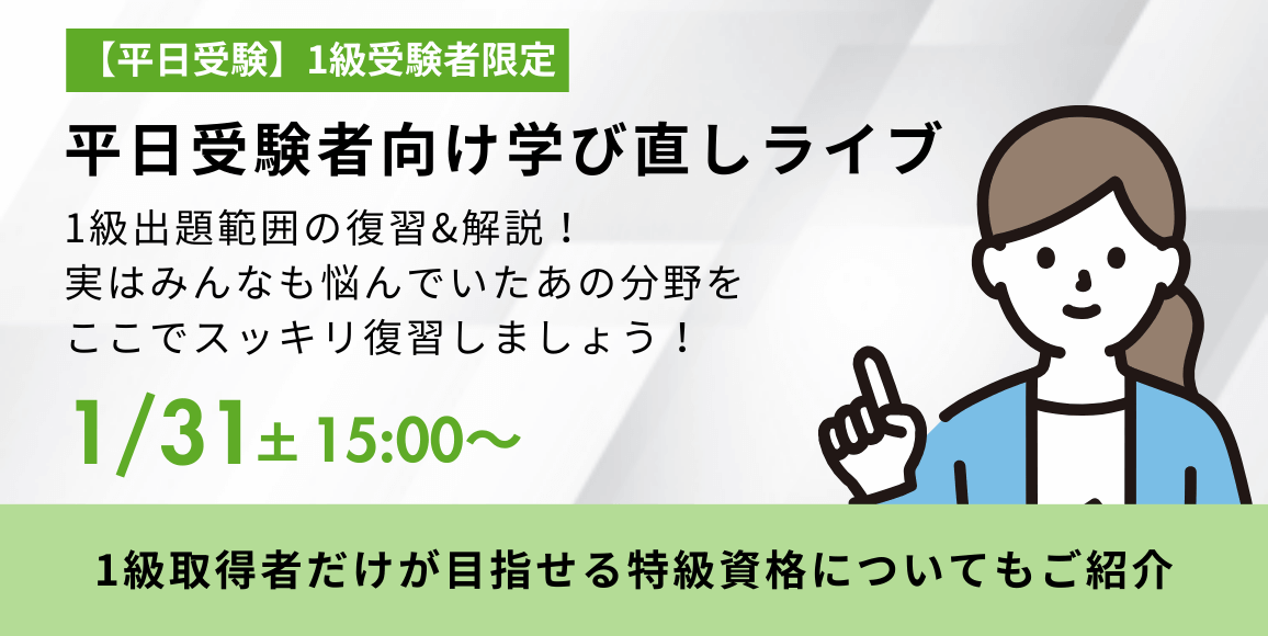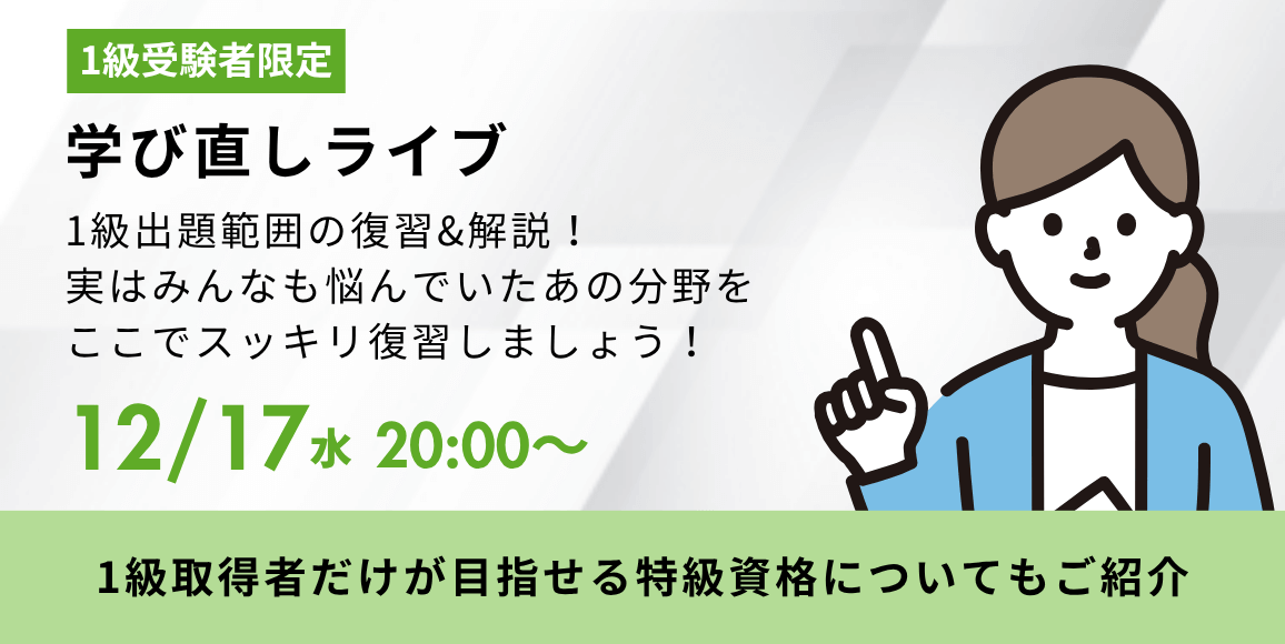 1級の出題範囲のうち、多くの方が理解に苦労した分野について復習&解説