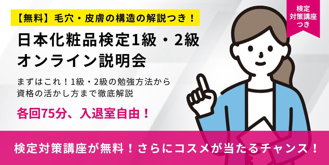 肌悩みを何とかしたいと思っているあなた。そんなあなたは、正しい知識でお悩みを解消できるかも。肌トラブルの根本原因から正しいケアまで、科学的根拠がある知識が身につく「日本化粧品検定2級」を受験するのがおすすめ!