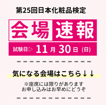 2025年11月30日開催の第25回日本化粧品検定は全国29会場で開催します。