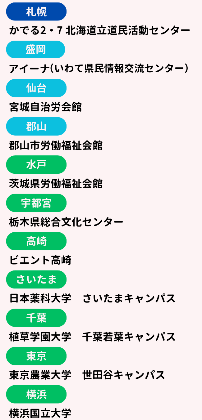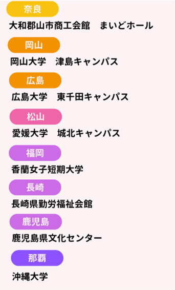 ※今後、会場が変更になる場合がございますので予めご了承ください。