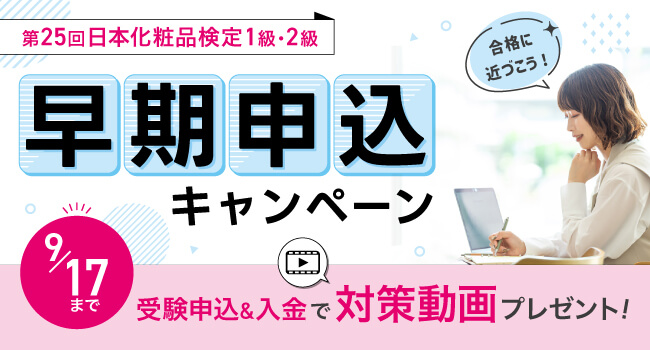 • 第25回 日本化粧品検定 特典やキャンペーンはこちら!