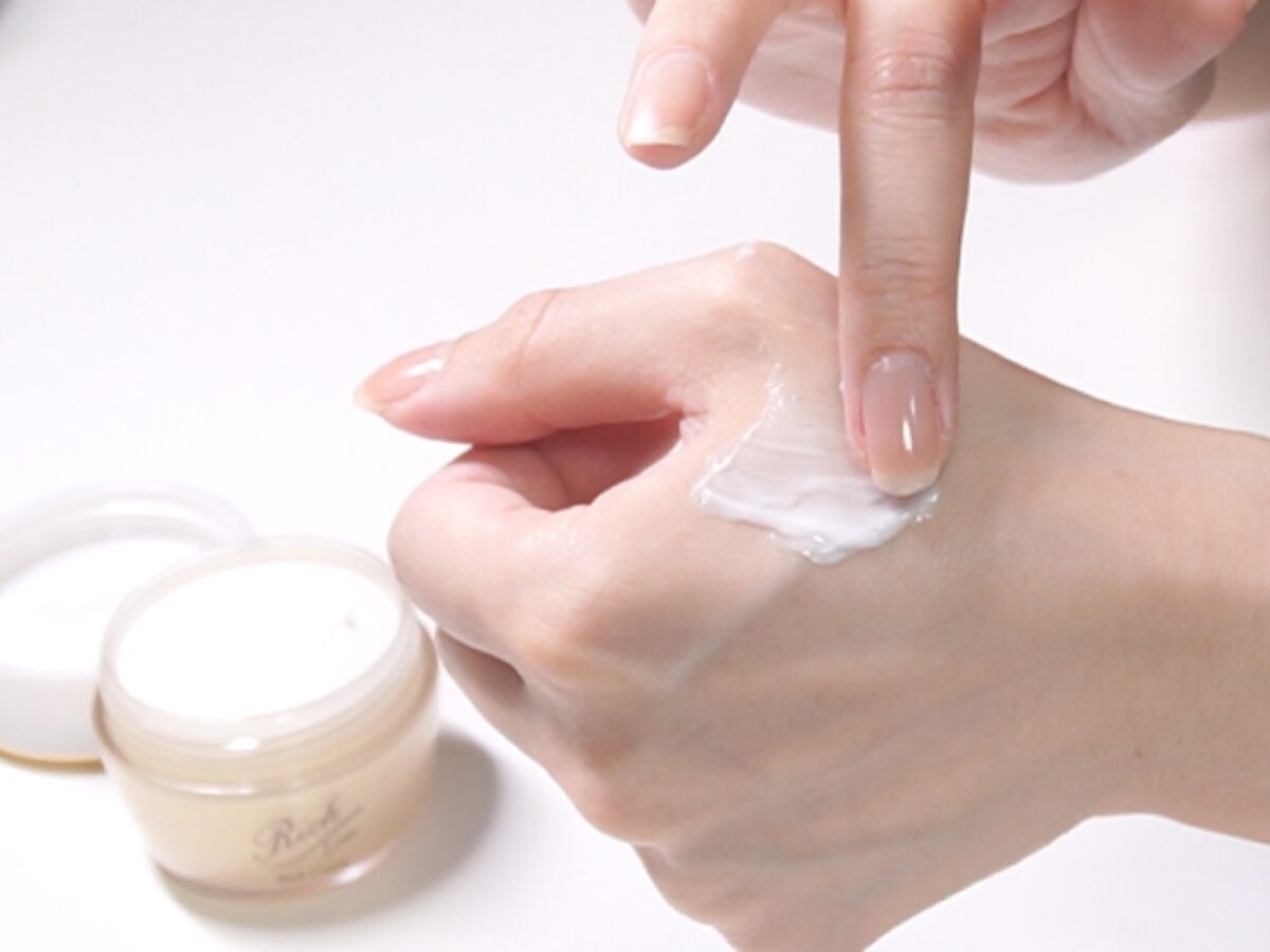 イオナ エフの全アイテムには、ゼリア新薬が長年研究してきた「コンドロイチン*2」が配合されています。この「コンドロイチン*2」には、肌の表面にラップのような膜を張り水分を閉じ込める働きがあります。そのため、クリームを塗った肌は、時間が経っても乾燥しにくいのが特徴です。