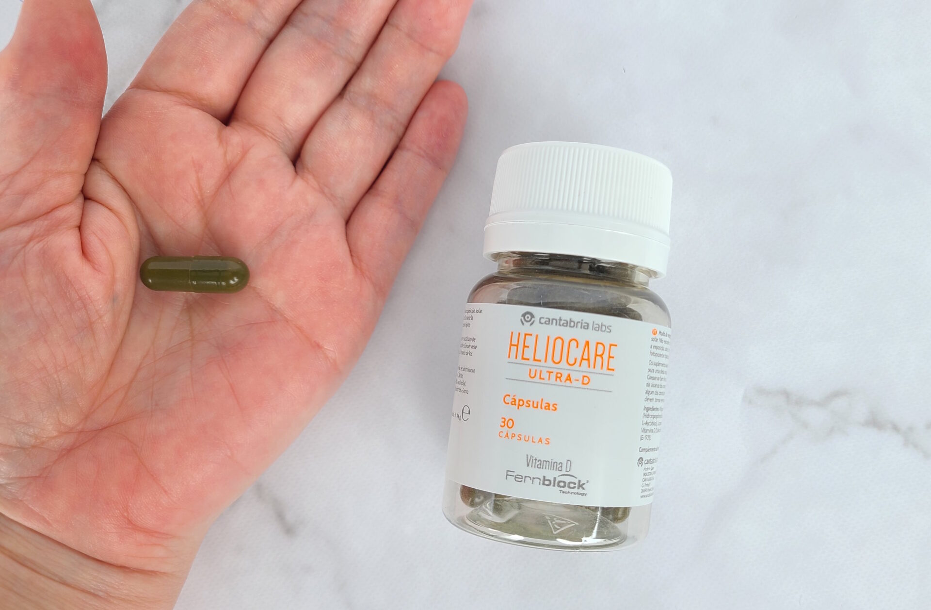 近年注目されている飲むUVケア。中でも人気の「ヘリオケア ウルトラD」は、シダ植物由来の抗酸化成分ファーンブロックを配合し、紫外線による酸化ストレスに内側からアプローチします。外出の30分前に1カプセル飲むだけで、塗りムラやメイク直しが難しいシーンでも心強い味方に。カプセルの色は茶色で、一般的なサイズ感。飲みにくさはなく、手軽に取り入れられるのも魅力です。