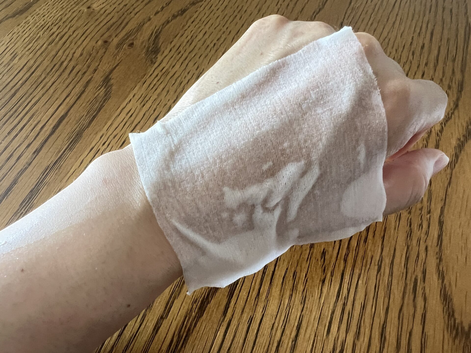 出来上がった美容成分ヒタヒタのシートは、顔につけた瞬間からひんやりと心地よく、肌にしっかり水分を届けてフタまでしてくれる感覚。私は常温の水を使いましたが、日焼け後のクーリングには、冷蔵庫で冷やした水を使用するなど、オリジナルのアレンジも楽しめそう。自分で仕上げるステップが新しく、エンタメ性もあるので、友人へのギフト候補リスト入り決定です!