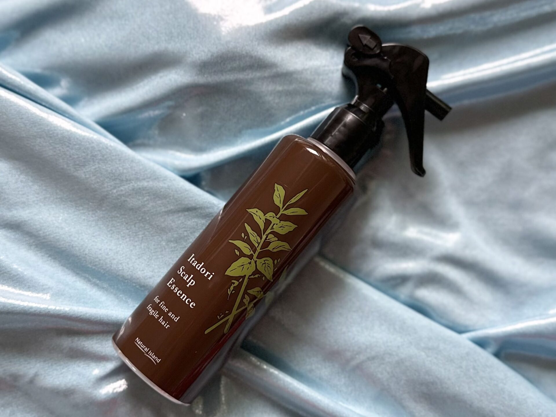 頭皮ケアには、頭皮専用エイジングケア※3エッセンスがおすすめ。タオルドライ後に髪をかき分けながら数カ所にスプレーして、指の腹で頭皮全体へなじませます。ナチュラルアイランドのイタドリスカルプエッセンスは、北海道に自生する「オオイタドリ」の根の生命力に着目した頭皮用エッセンスです。肌に化粧水をつけるように頭皮の乾燥へアプローチ。頭皮の弾力を整え、ハリとツヤのある美髪を育みます。塗布しやすいトリガータイプのボトルは、逆さにしてもスプレー可能。頭皮ケアが初めの方にも使いやすく、レモングラスのほのかな香りも◎。