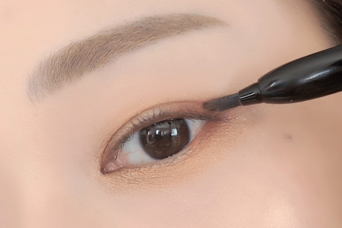 目尻のアイラインが苦手な方も、ペンシルやリキッドを使う前にこちらのブラシでガイドラインを引いておくと、左右の角度も合わせやすく美しい仕上がりに。さらに、下まぶたの目尻の三角ゾーンを埋めたり、涙袋の影を自然に引いたりと、毎日のアイメイクに大活躍です。