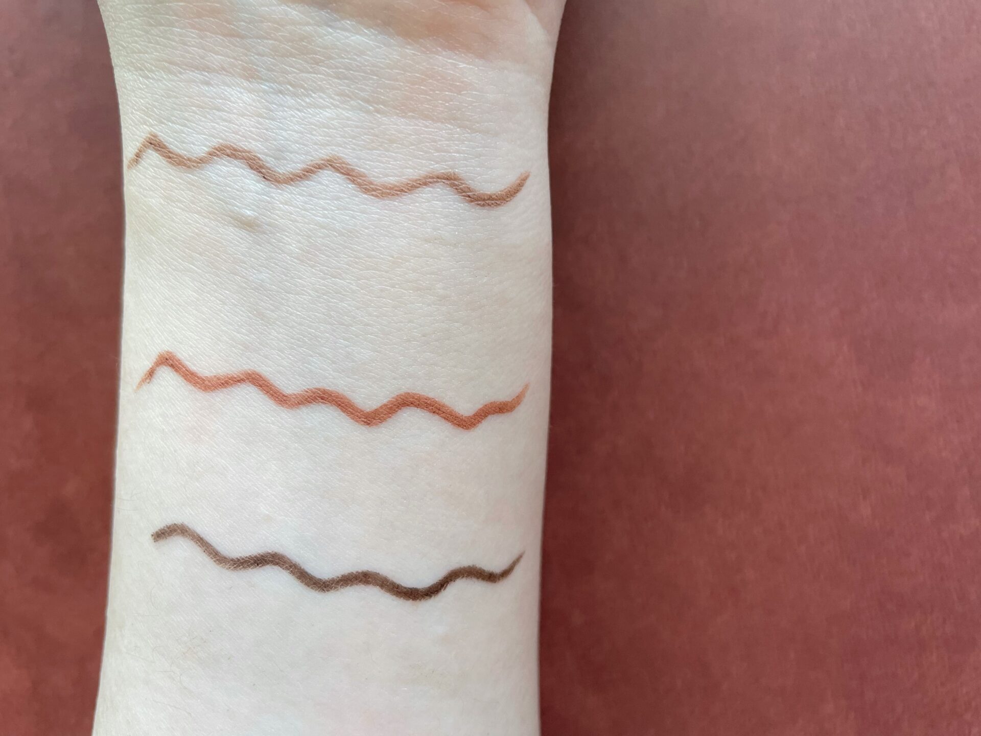 写真のココアグレージュとダージリンピンクは、さりげない色みで主張しすぎず、どんなメイクにも合わせやすいカラーです。ダークブラウンは、目元を引き締めたい時にインラインに入れるのがおすすめ。ブラックほど暗くなく、ほどよく目元を引き立ててくれます。プチプラでカラーバリエーションも豊富!手軽にいろいろなメイクにチャレンジできそうですね。