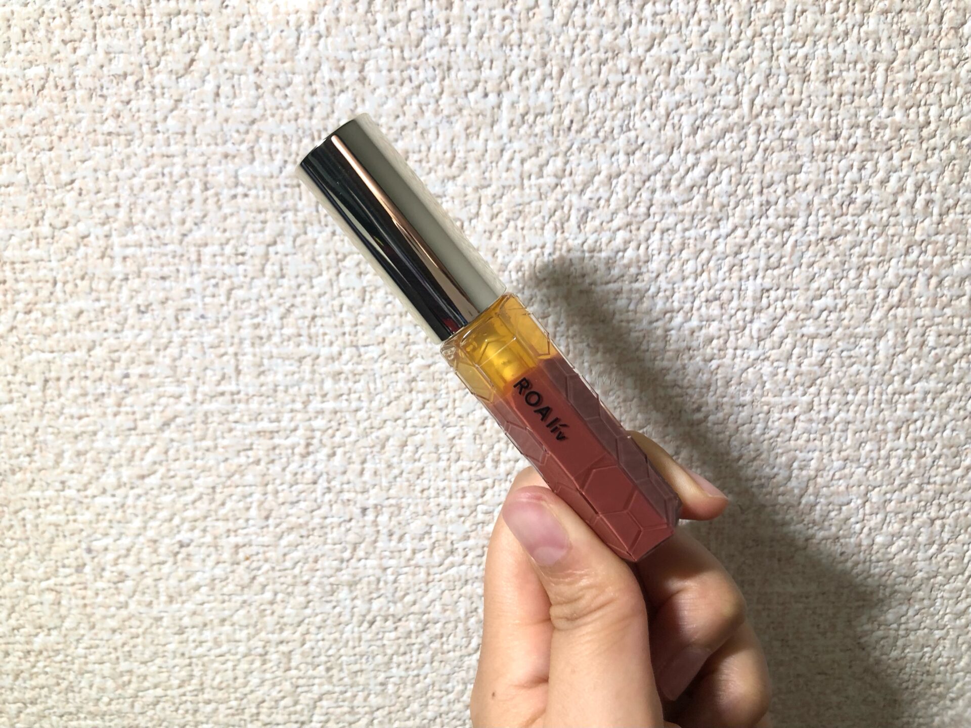 北海道産アカシア蜂蜜を使用した唇美容液兼リップグロス。ベタつくことなくうるおいを保ち、十分なツヤを与えてくれます。写真のロータンゼは、微細パールが配合された粘膜カラー。ラフに塗るだけで、自然かつ色気を秘めたリップメイクが完成します。私は、唇の皮剥けがひどく、縦ジワが目立ちがちなのですが、このグロスがメイクとケアを同時に叶えてくれるので助かっています。ほのかに漂う甘い香りが、日々に追われる焦りやストレスを和らげてくれます。