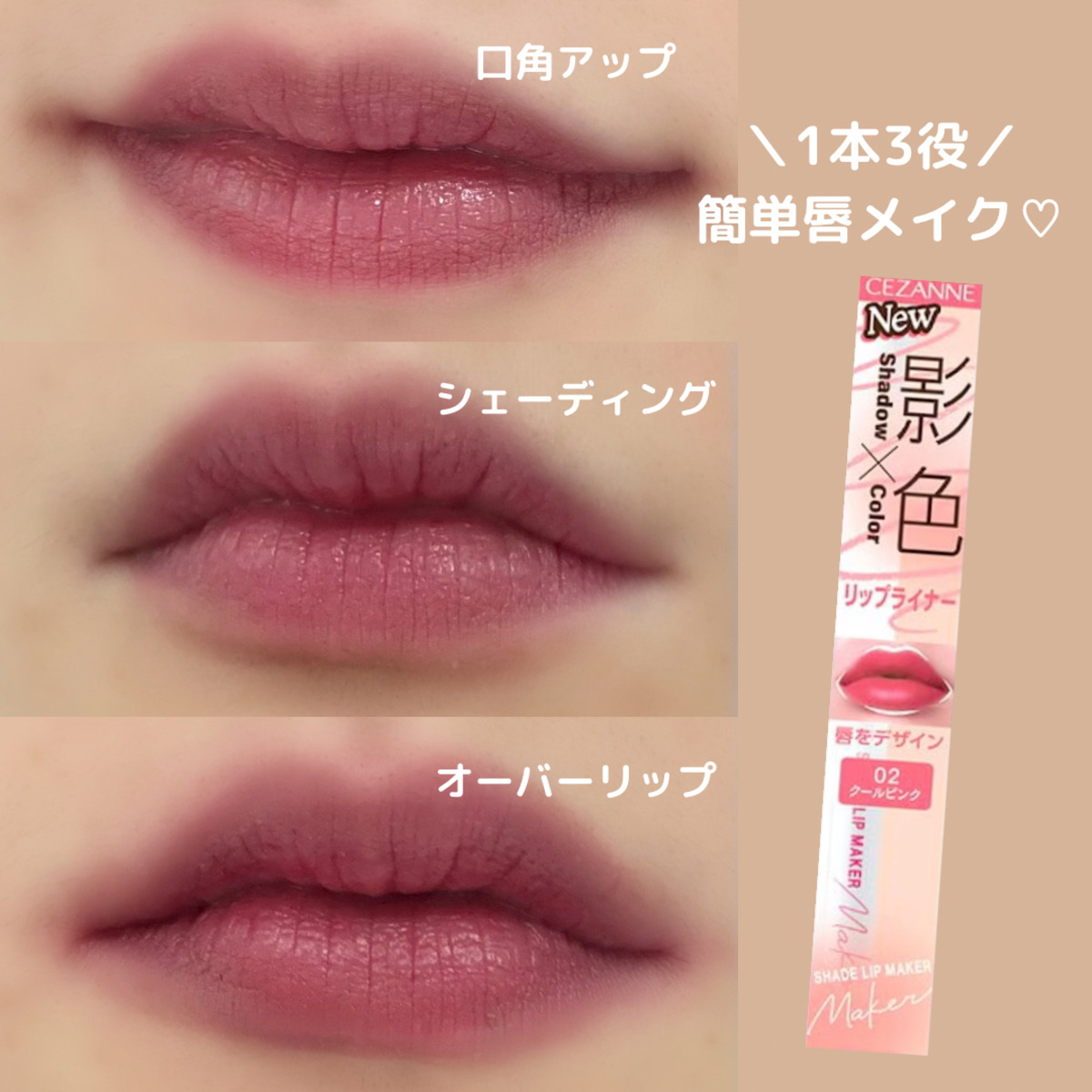 秋色リップをさらに際立たせるのは、やっぱり唇の形。最後は、セザンヌの「影色リップメイカー」を使った簡単な唇メイク方法を紹介します!