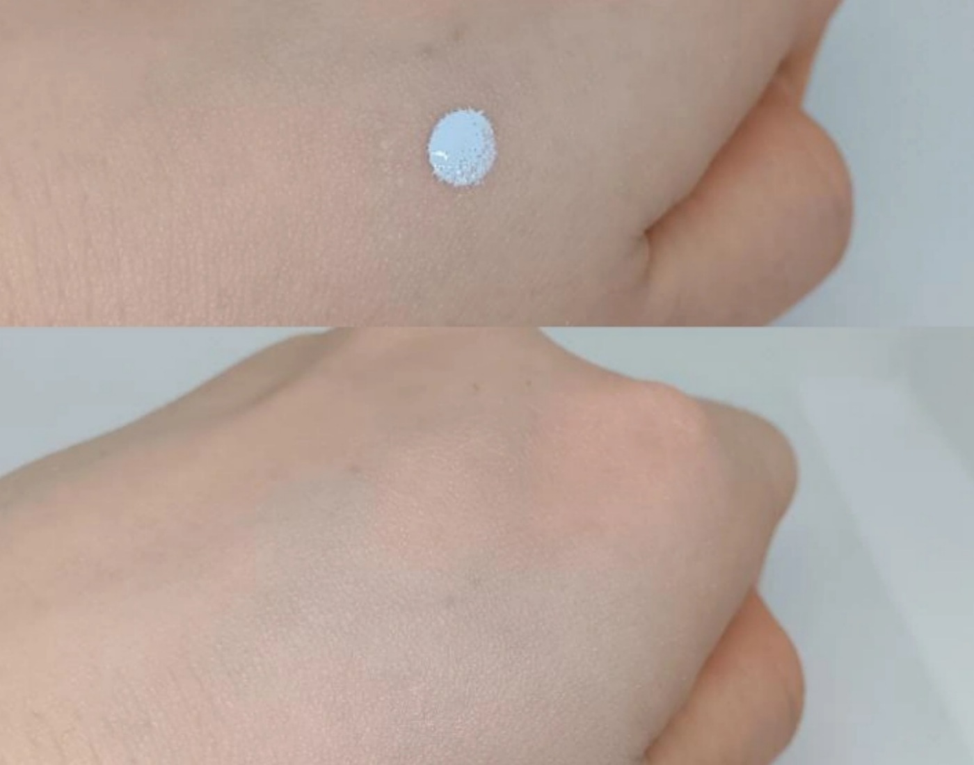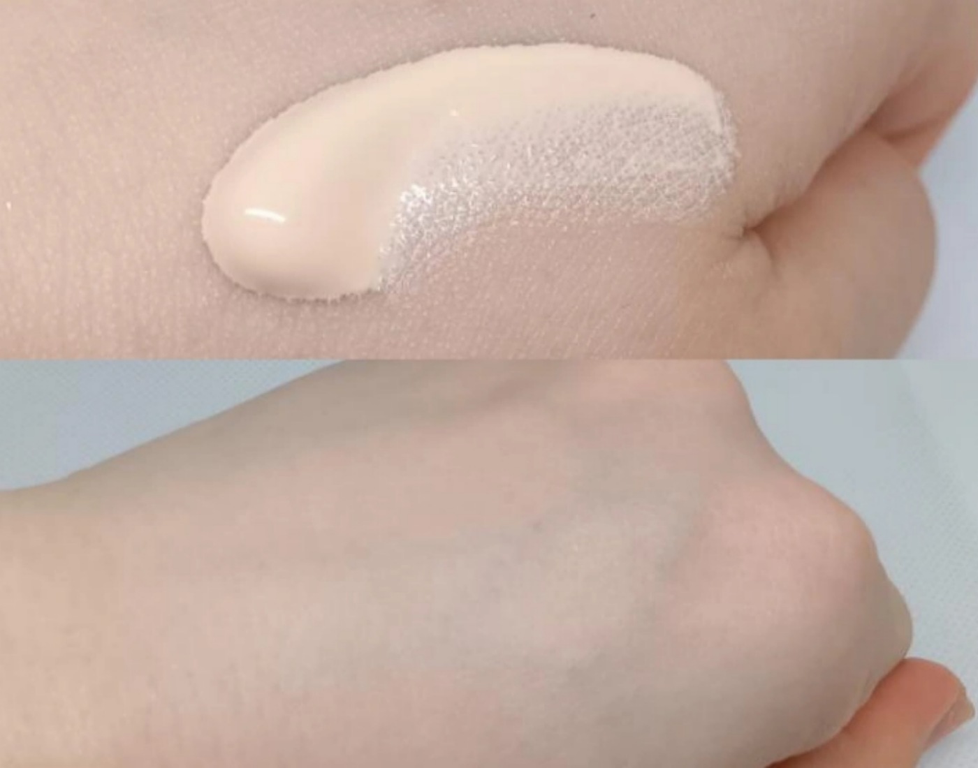 みずみずしい美容液をのばしているような感触で、スーッと肌になじみます。軽い使用感なのに、毛穴の凹凸感をしっかりカバー。肌が均一に整い、透明感が出ます。