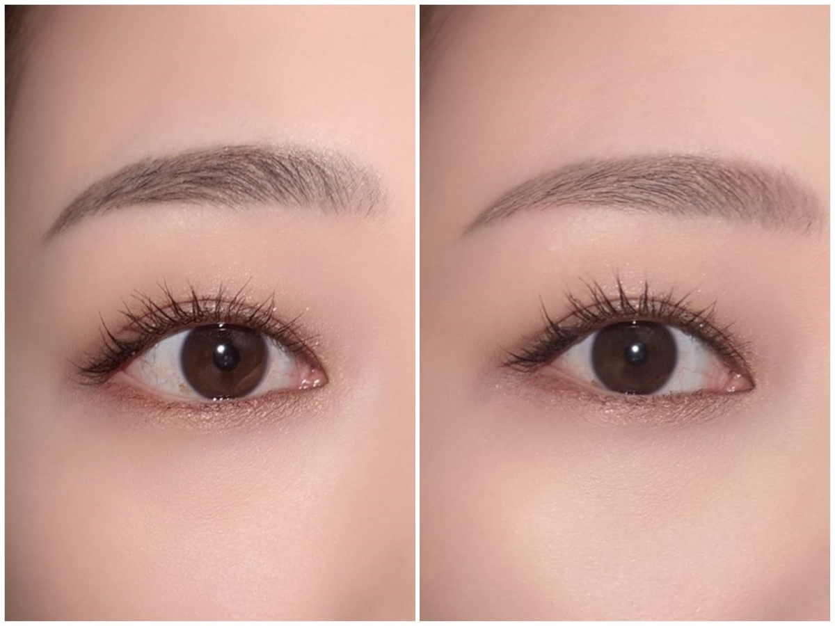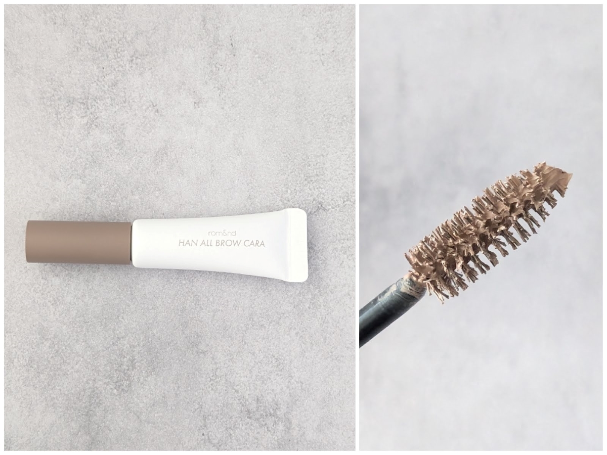 ロムアンドのハンオールブロウカラ11は、どんな髪色の方でも使いやすいアッシュブラウンカラー。くすみのある色味で、明るいのに浮かない、絶妙な発色が魅力です。私のしっかりとした黒い眉毛も、毛流れに沿ってとかすだけでやわらかい印象に変わります(写真左→右)。細身のブラシが使いやすく、肌にベタっと付かず眉毛だけきれい染められるので、アイブロウマスカラ初心者さんにもおすすめです。