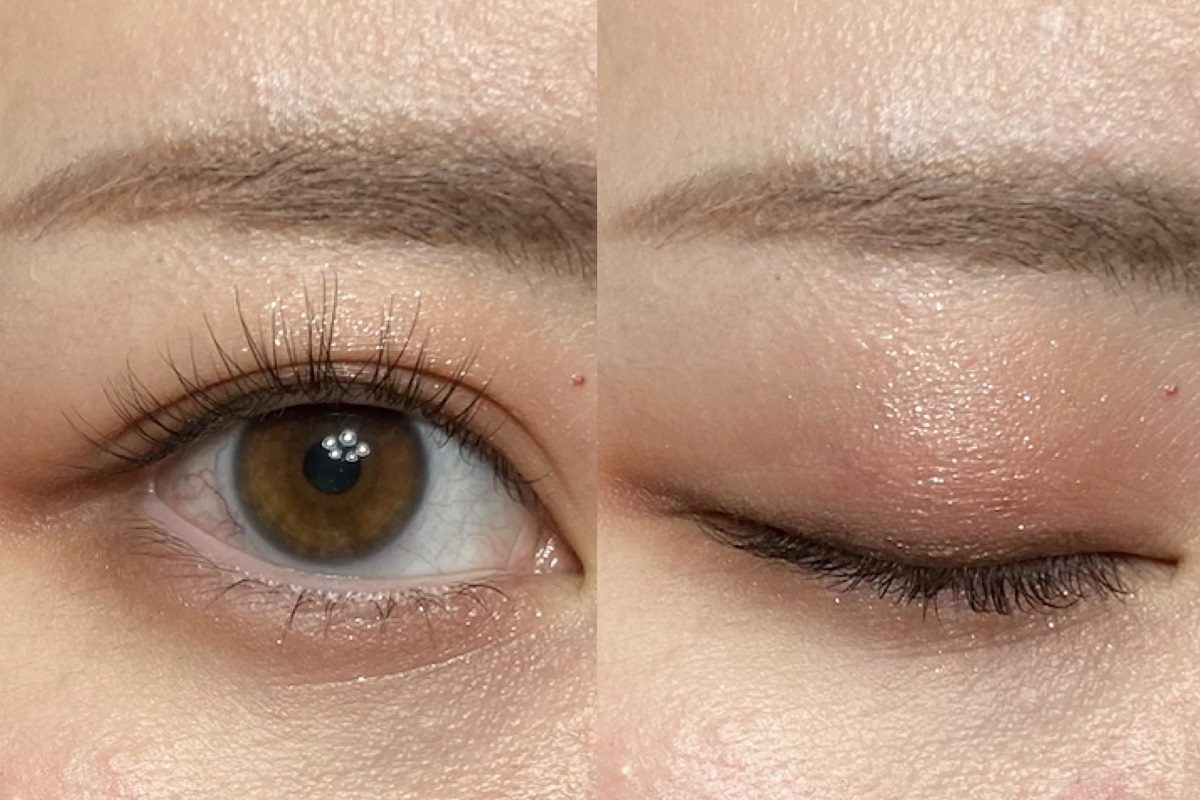 上真ん中をベースとして使うと、発色と色持ちがアップします。右上と左下を混ぜてアイホールに、右上は下まぶたにものせ、春らしい印象に。右下を二重幅と下まぶた目尻側1/3に入れると、自然な陰影が生まれます。左上を下まぶた目頭側2/3に仕込み、明るさをプラス。最後に、下真ん中を黒目の上と、下まぶた目頭側2/3にさらに重ね、煌めきを足しました。